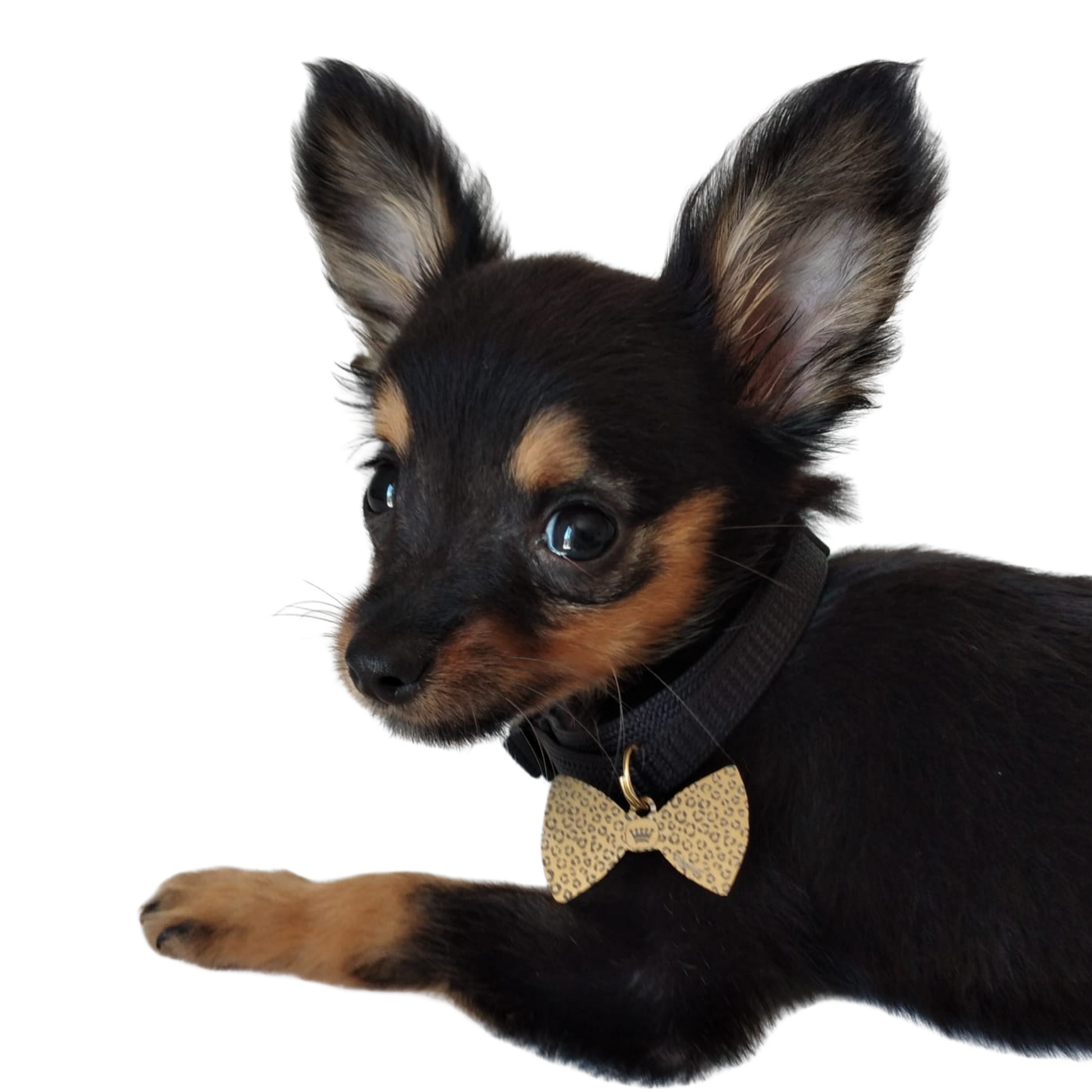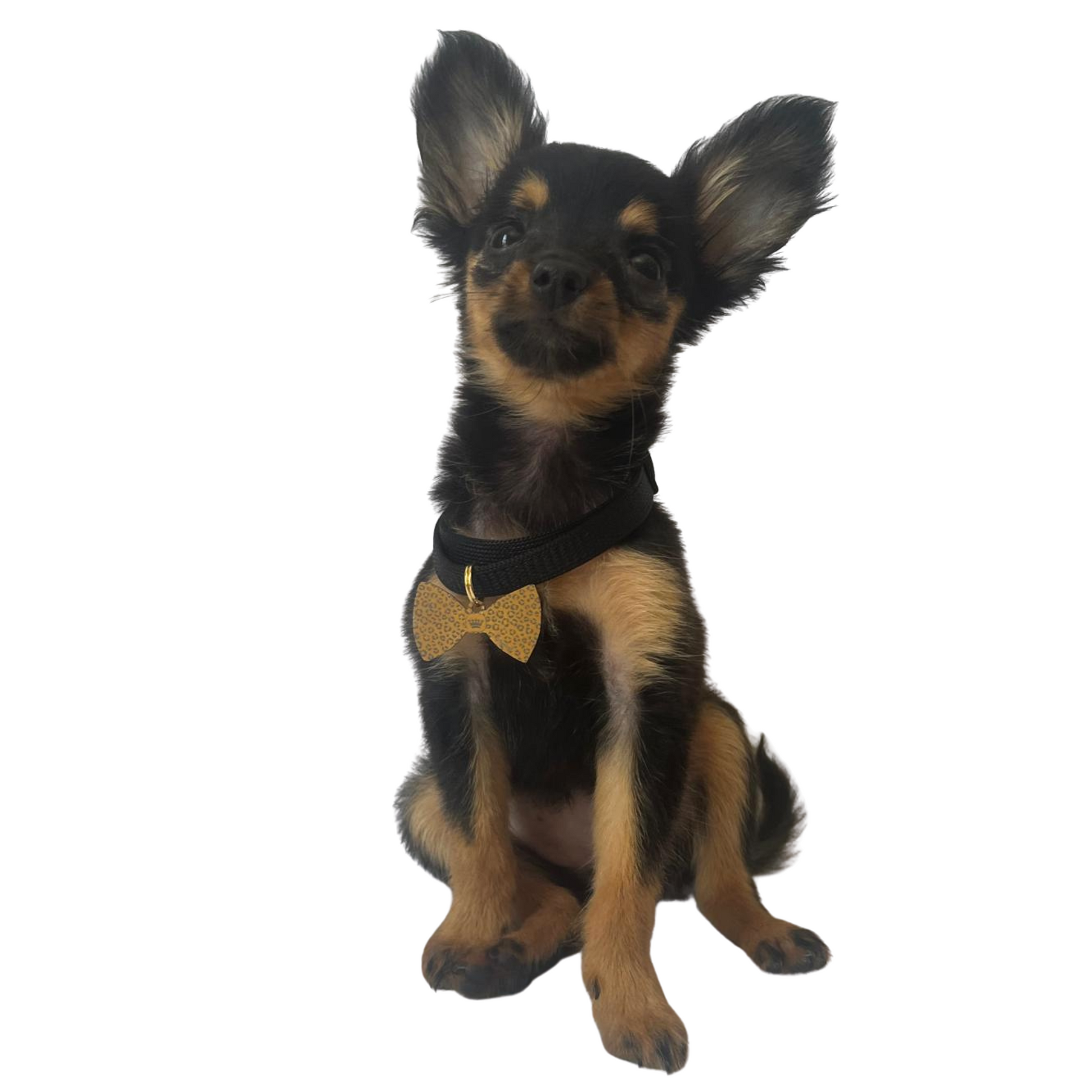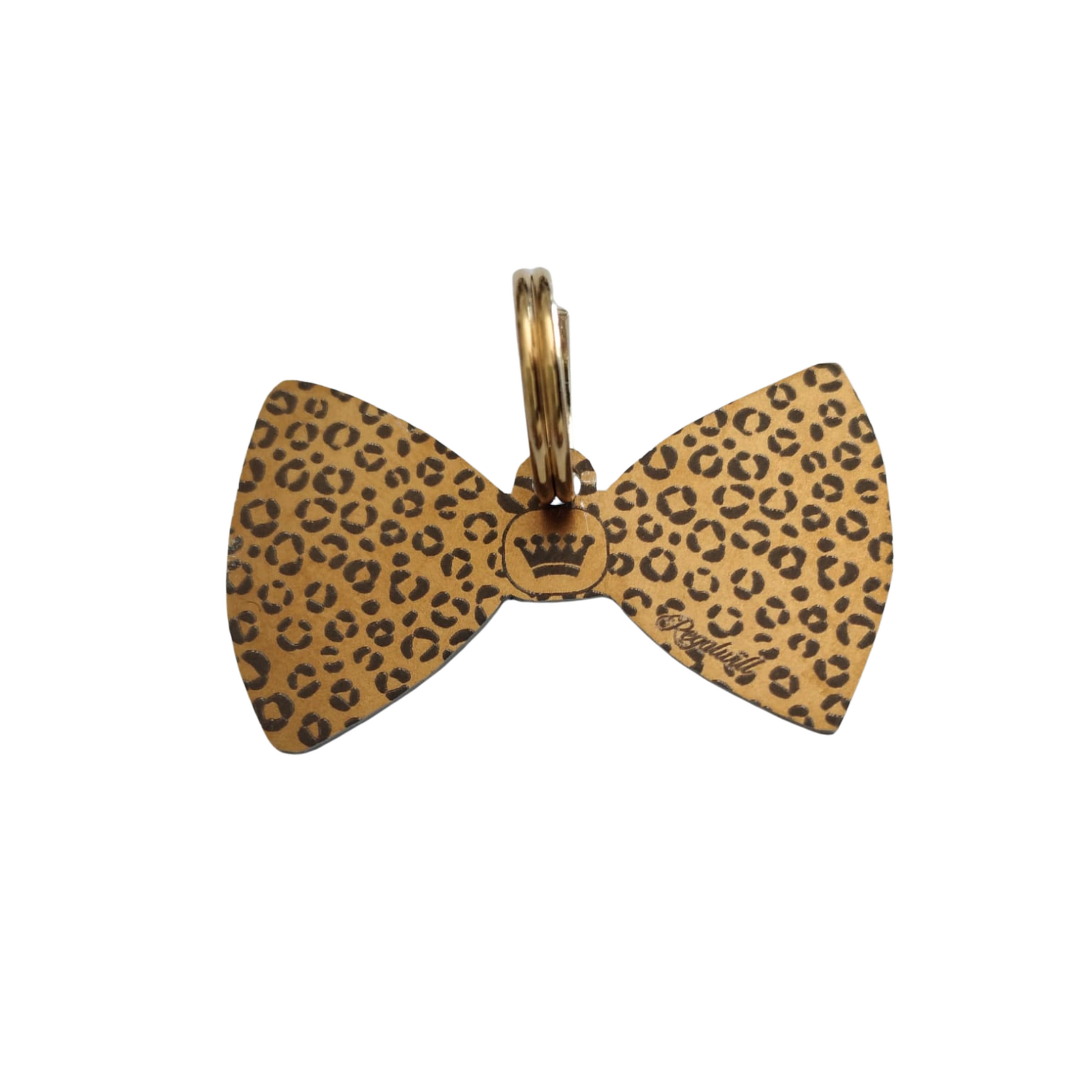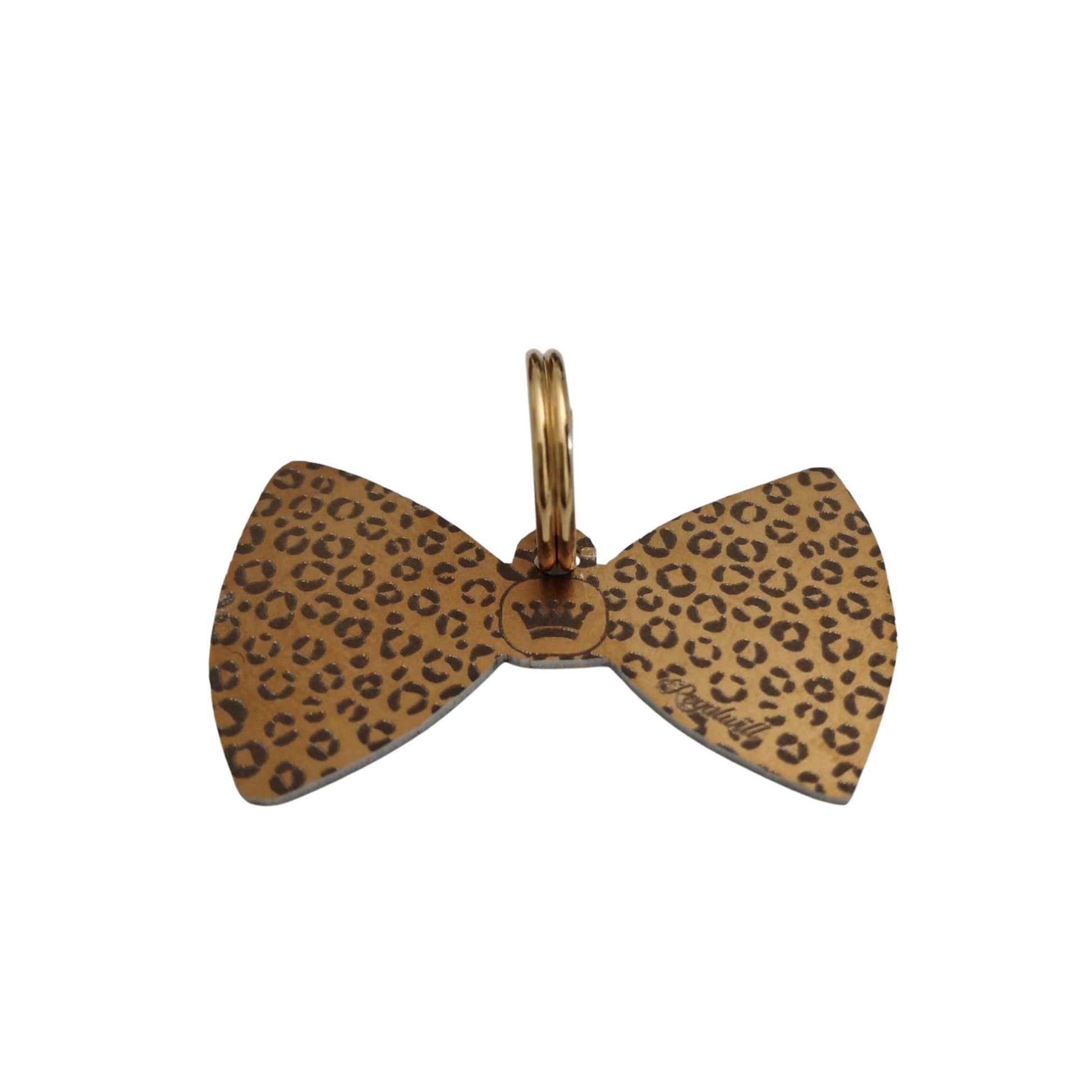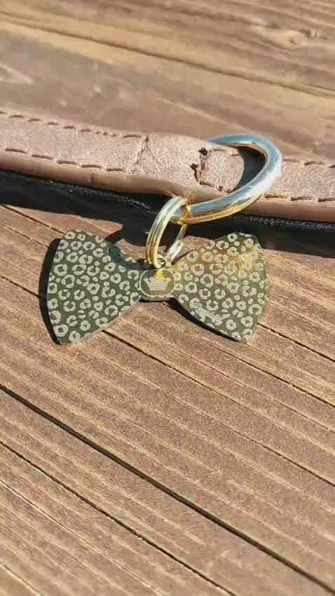 Dog tag in the shape of a bow tie (with an irregular outline) for a realistic sensation.