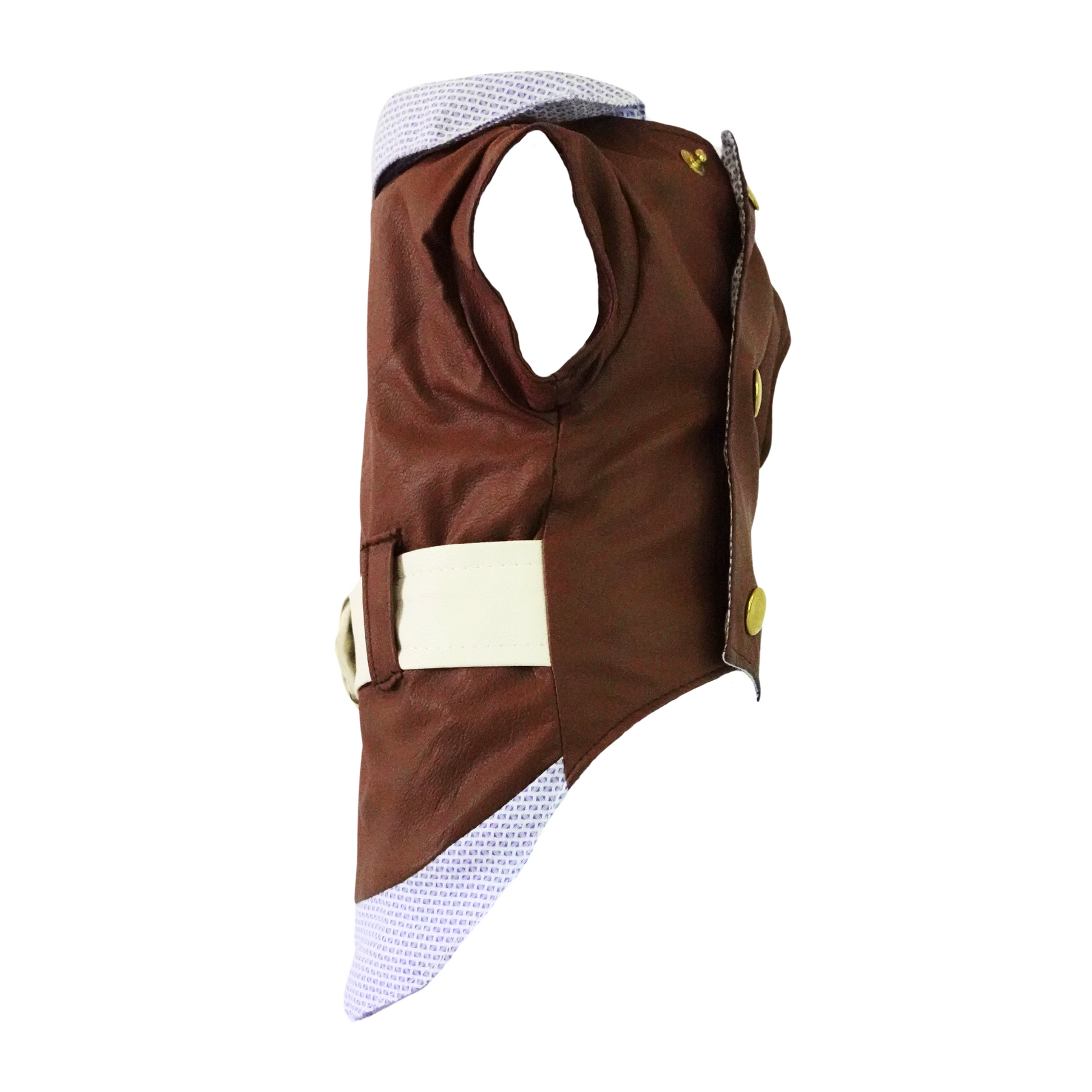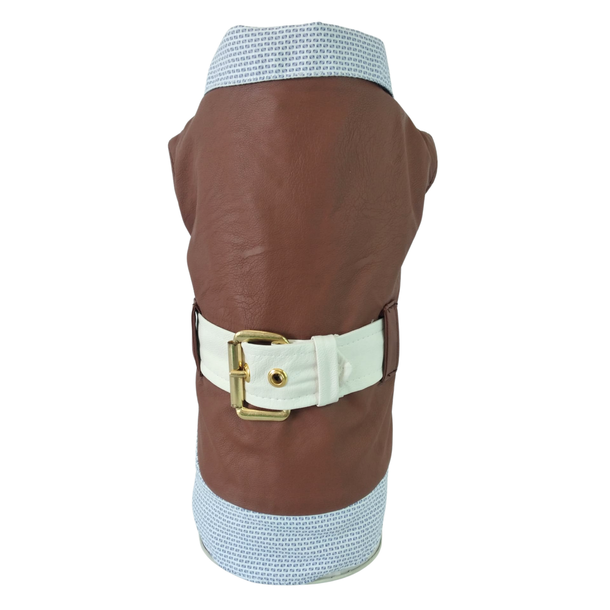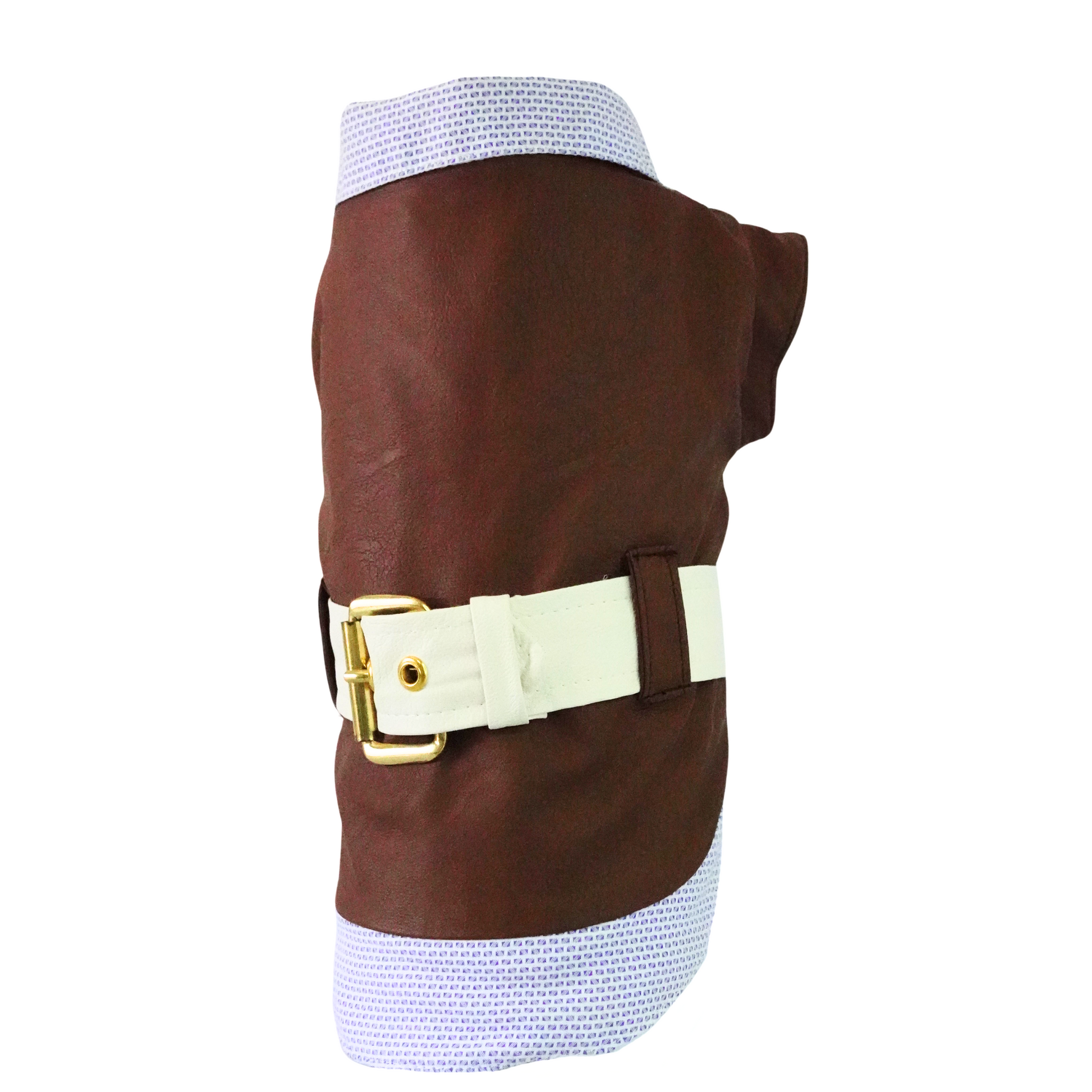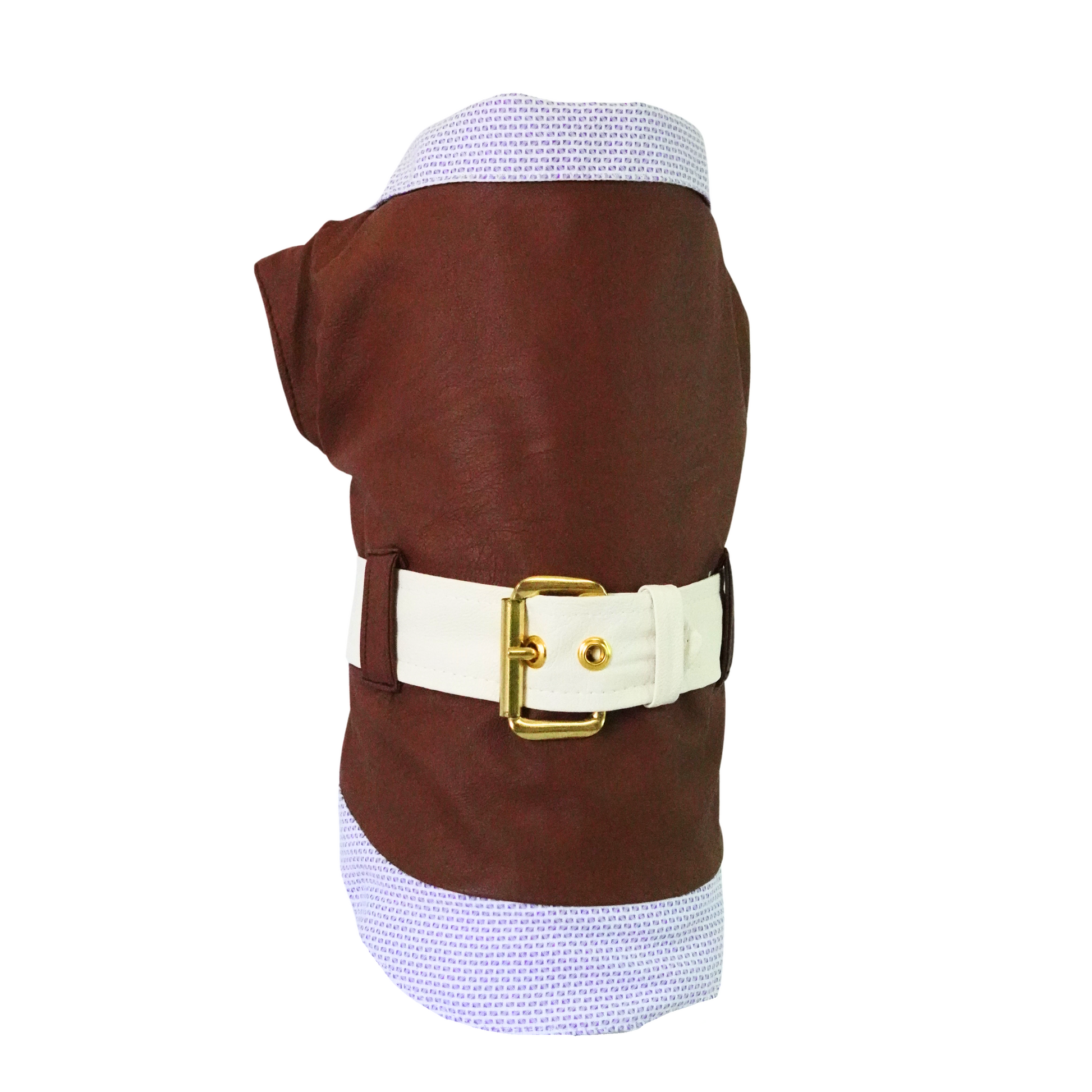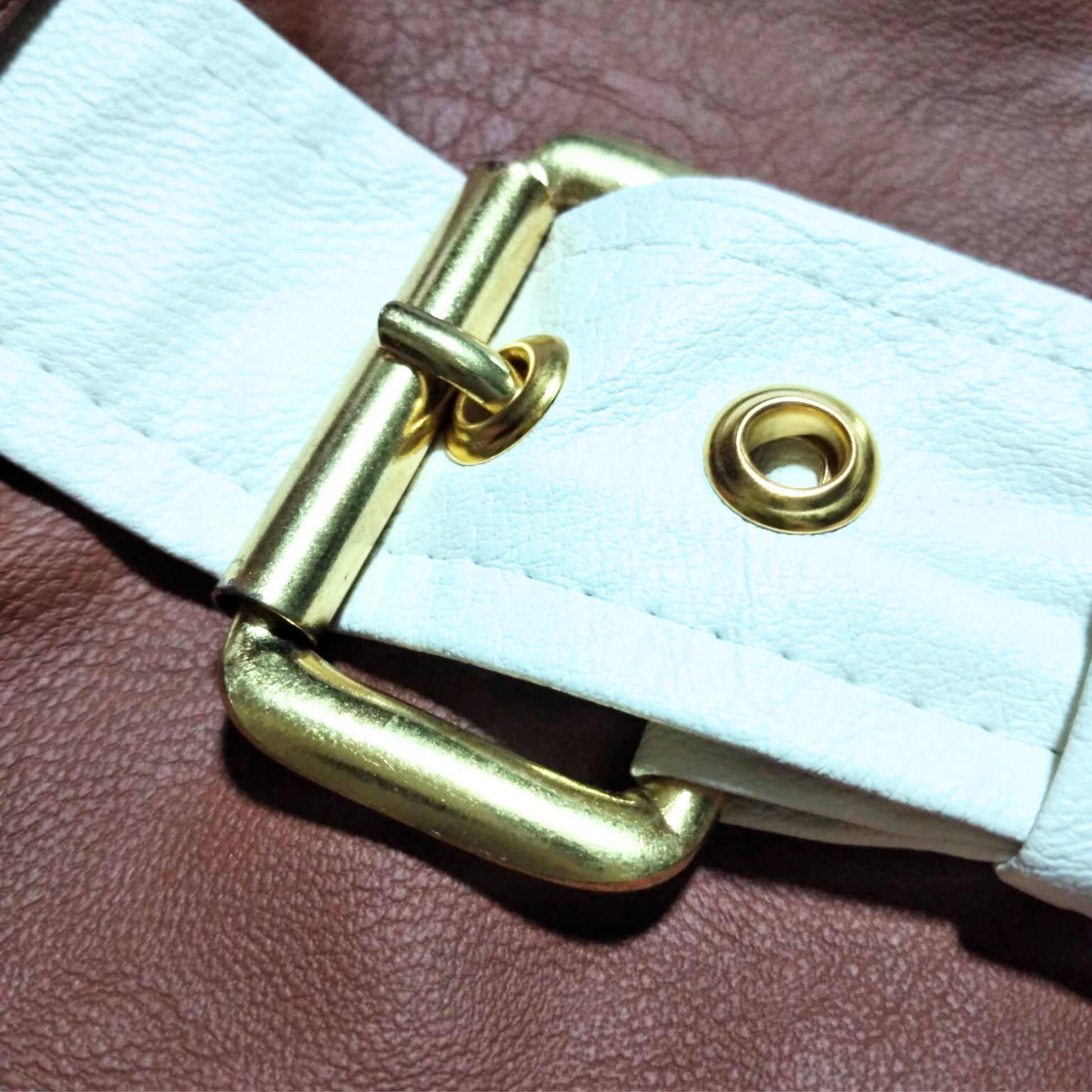 Handmade, lined entirely inside by the cotton blend fabric of the shirt in fusion with eco-leather and waist belt also in eco-leather (functional) in vintage white and gold-colored buckle.