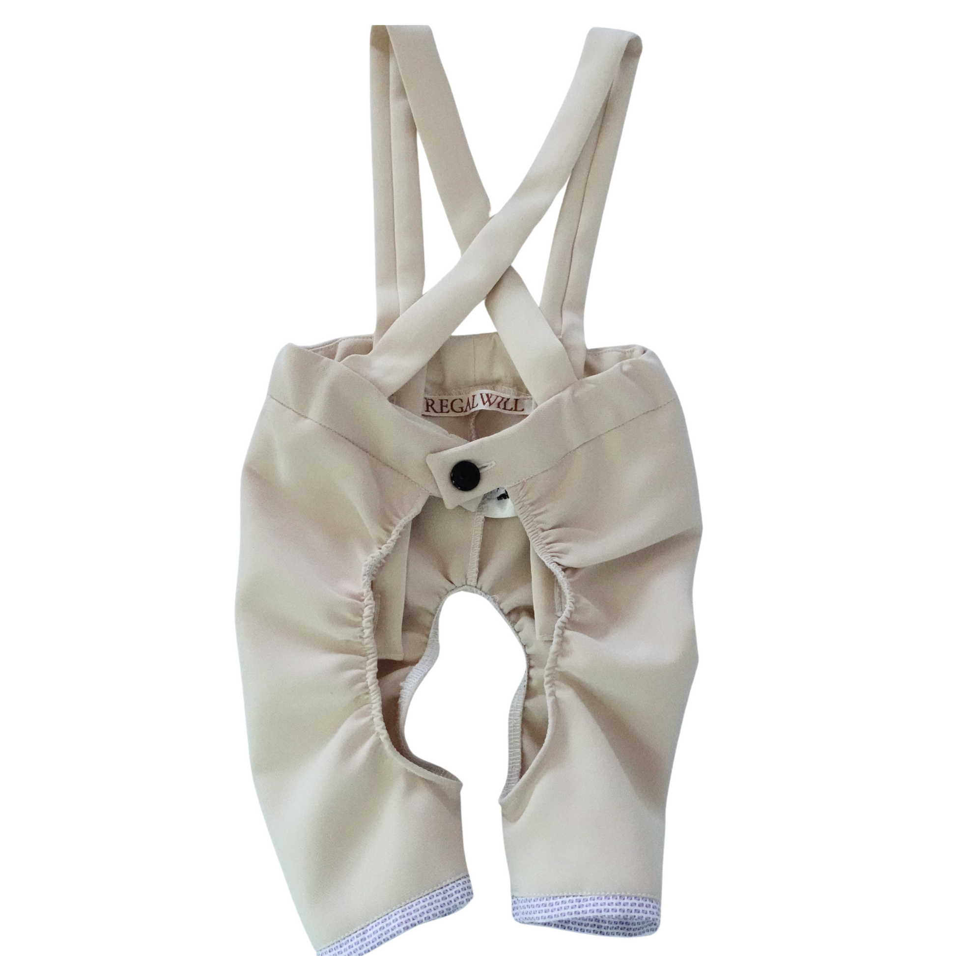 At the waist it closes with a button and with two adjustable straps, which in addition to embellishing the look help us to keep the trousers more stable.
