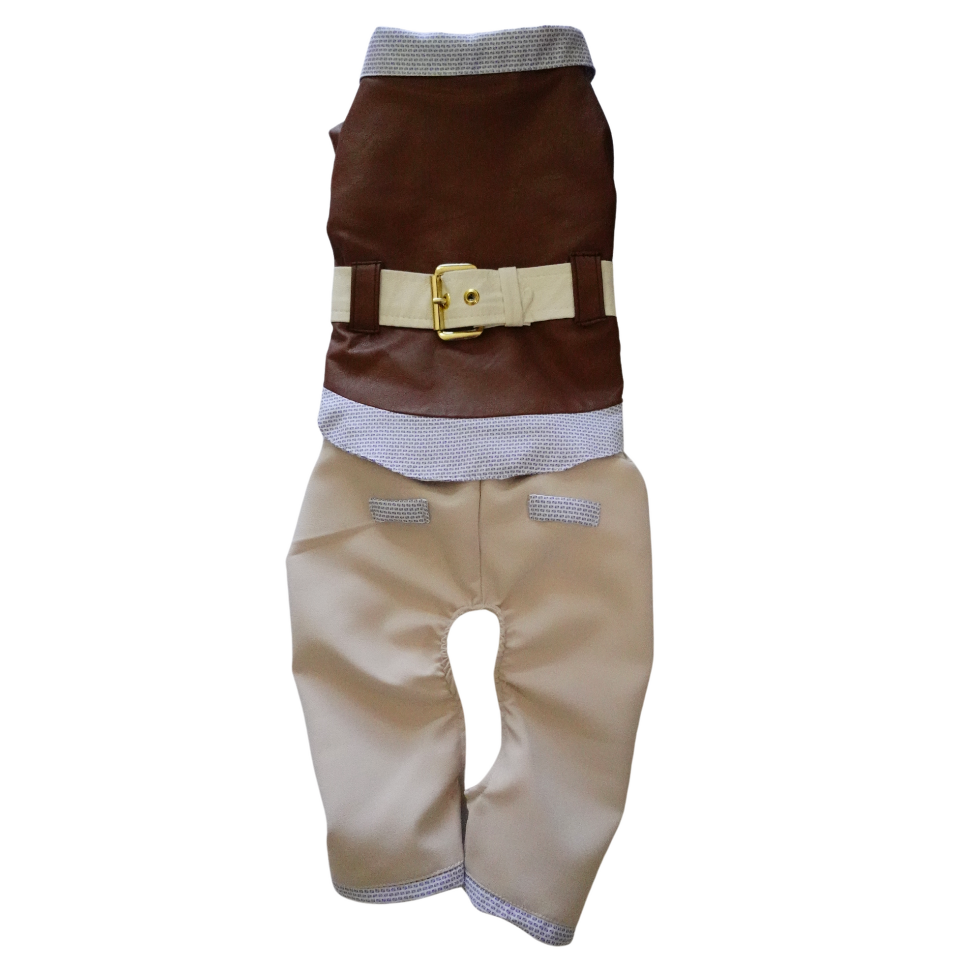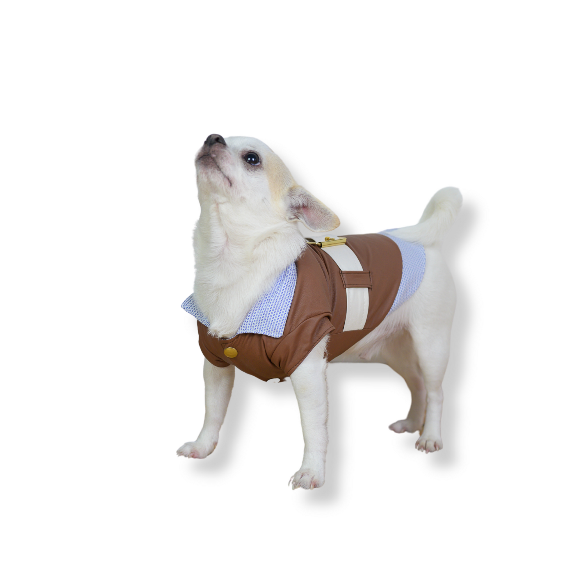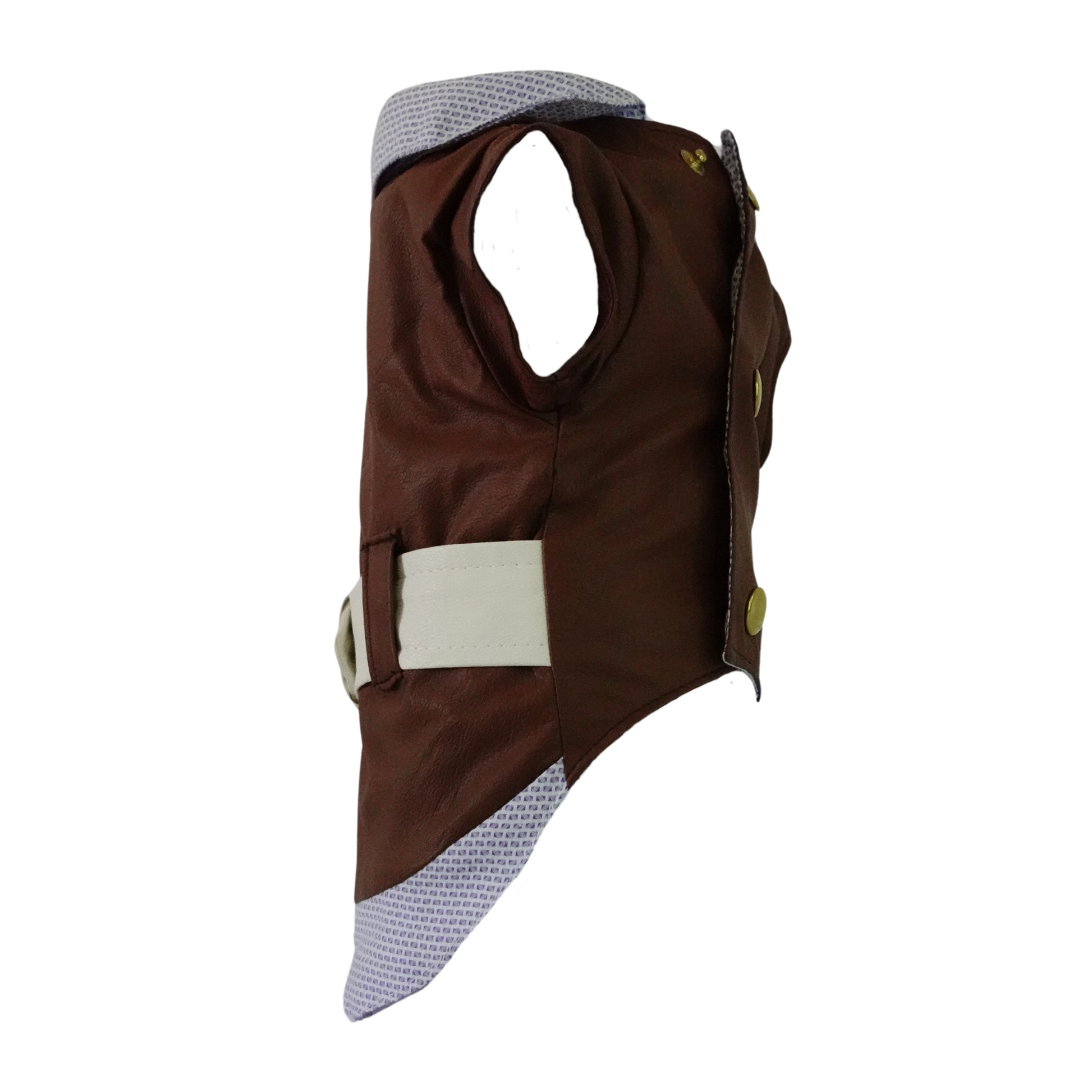The brown eco-leather jacket, scratch-resistant, incredibly soft, leaves room for movement to our four-legged friend, free to run and play as if he were not wearing anything.